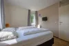 Het appartement heeft 2 gezellig ingerichte slaapkamers, met beide een tweepersoonsbed. Geniet van een goede nachtrust met onze Auping-matrassen (2023). Er is voldoende kastruimte en beide slaapkamers hebben een TV voor extra ontspanning.